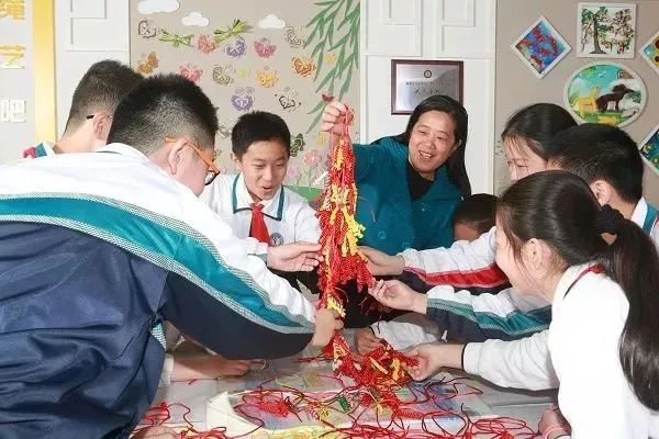 ▲ 创意结绳课上教师指导手工创智坊的学生进行活动