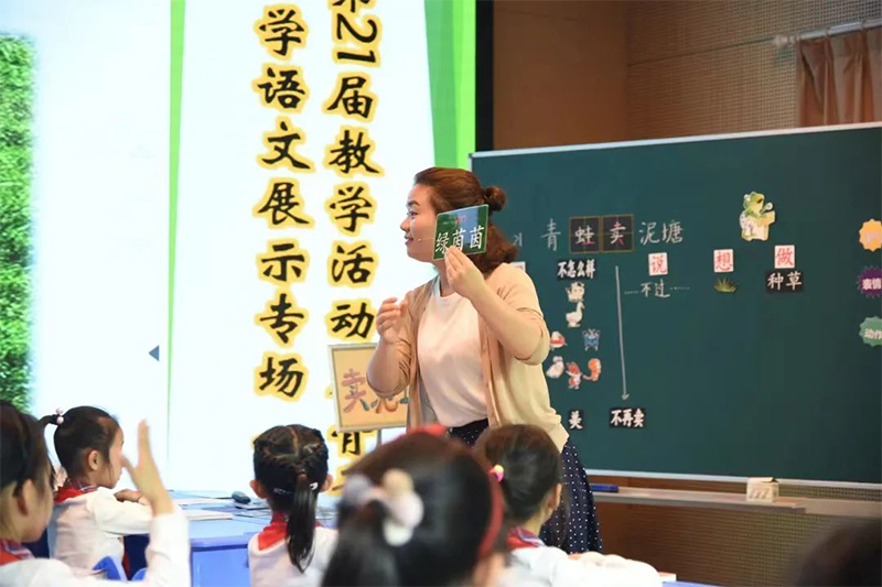 宝山区鹿鸣学校语文教师李静不断优化作业设计。图为语文公开课现场