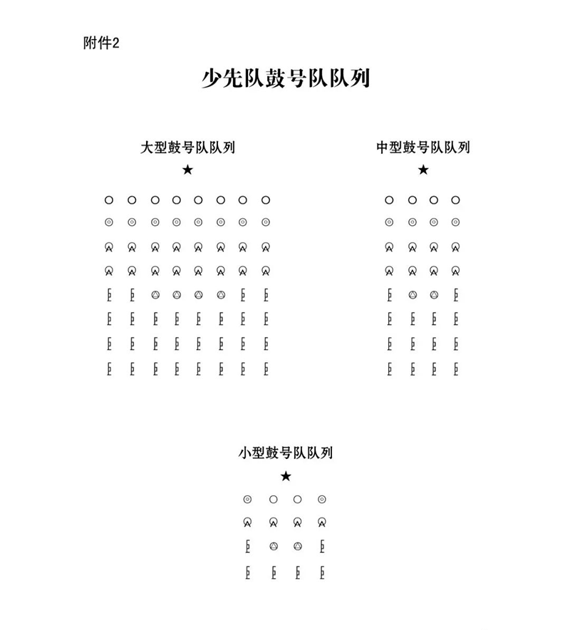 (一)少先队鼓号队服装应当体现少先队组织特色,鼓号队演奏时应当佩戴红领巾和队委标志。