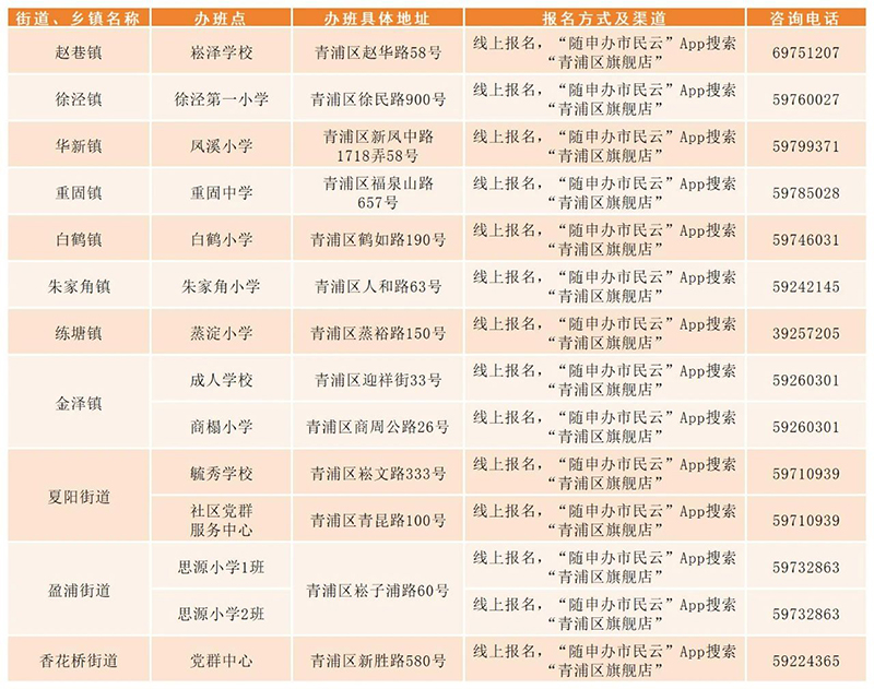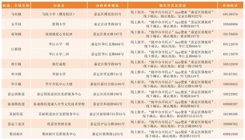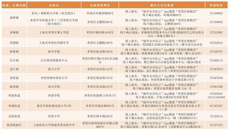 2.致电各街道、乡镇咨询热线:具体详见各街道、乡镇的招生简章。