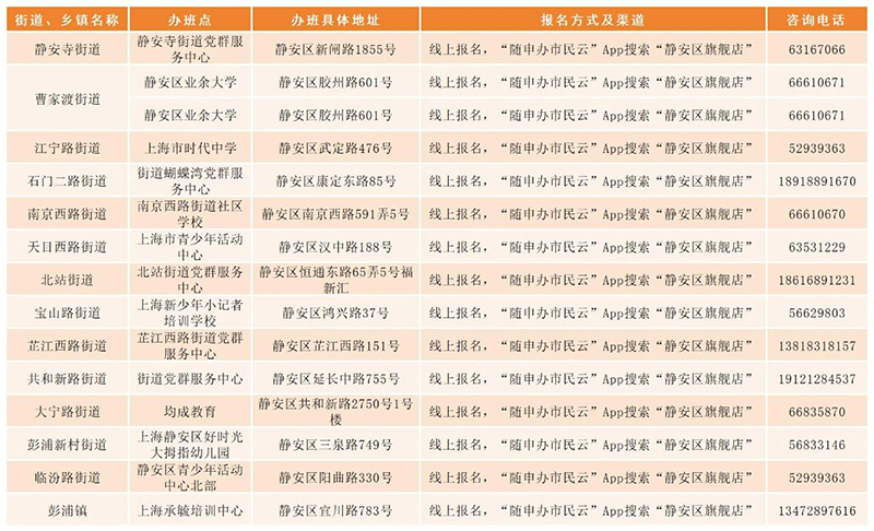 各办班点正式报名时间原则上不得早于1月2日,具体报名时间由各区根据实际情况确定并公布。