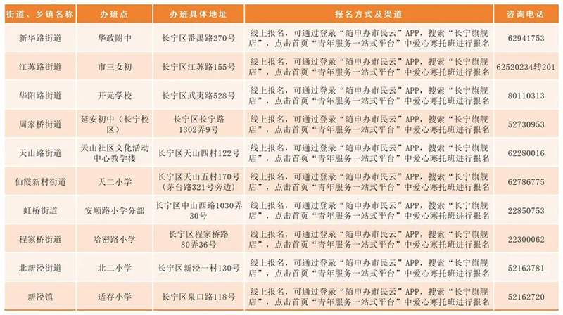 详细信息可于12月23日后查询。家长可通过“随申办(微信端、支付宝端、APP端)”查询“爱心寒托班”,登录爱心寒托班综合服务平台查询相关信息。报名成功后,可登录综合服务平台申领电子学员证。