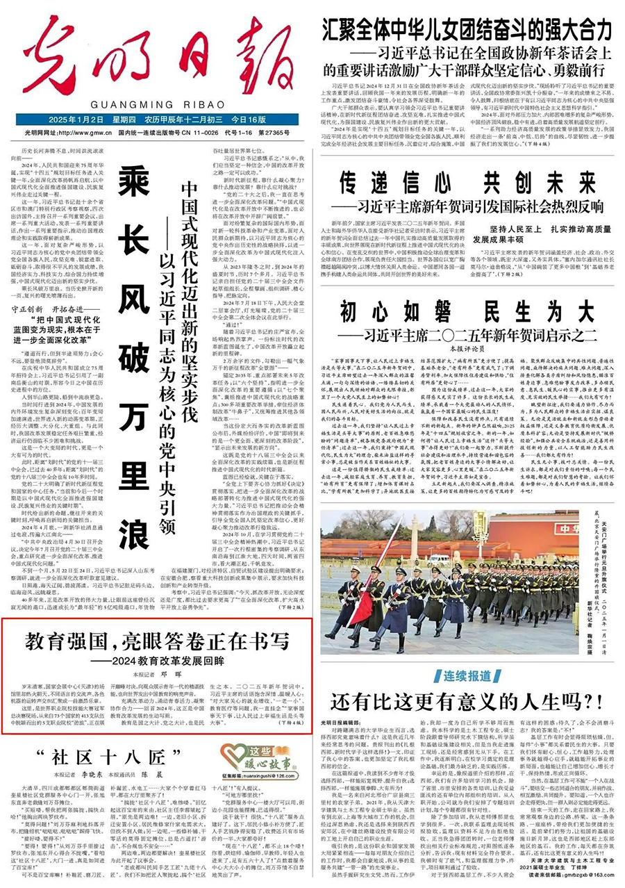 教育是国之大计、党之大计,也是民生之本。二〇二五年新年贺词中,习近平主席的话语饱含深情、温暖人心:“对大家关心的就业增收、‘一老一小’、教育医疗等问题,我一直挂念”“家事国事天下事,让人民过上幸福生活是头等大事”。
