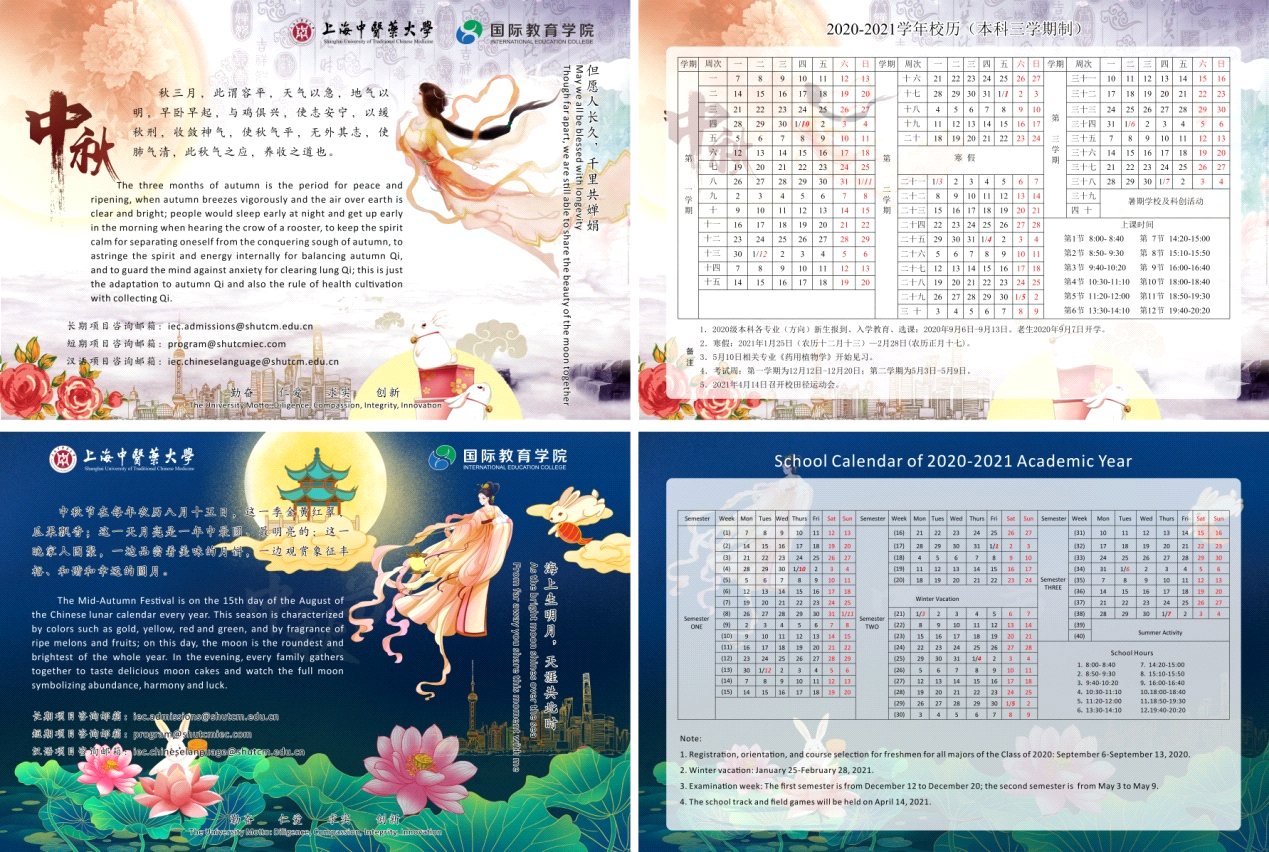 每逢佳节倍思亲,为了让远在异国他乡的国际学生感受到学校的关爱和中国传统节日的魅力,学生工作团队的老师们精心设计了中秋系列校历卡,将中秋节的习俗、诗句、中医养生知识融为一体,中英双语对照,增进了国际学生对中国习俗的了解,引发了他们对优秀传统文化的兴趣。