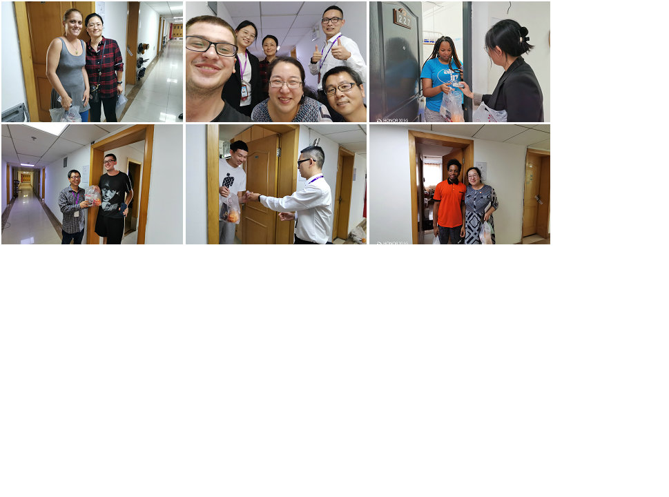 丹桂飘香又中秋,花好月圆人长久。在“十一”国庆节和中华民族传统节日中秋节来临之际,校国际教育学院学生工作团队教师员工前往华佗路和宛平南路学生宿舍看望留校国际学生,送上学校的关心与问候,带去节日的祝福与嘱托。