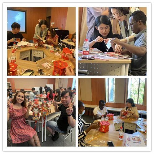 接下来的文化课程是中秋文化民俗体验——做花灯。国际教育学院党总支书记刘东锋和老师们与国际学生们一起兴致勃勃地制作“兔爷儿”等中秋主题的灯笼。一盏盏小灯笼在这个秋日点亮一颗颗温暖、明亮的心。