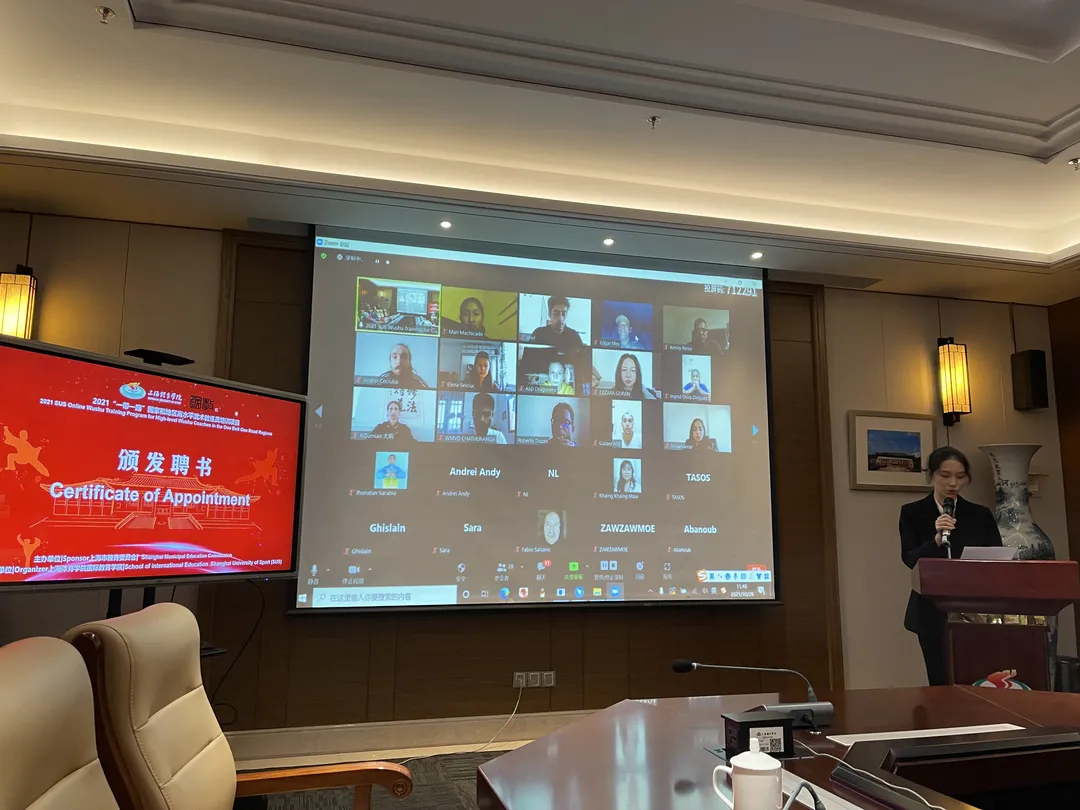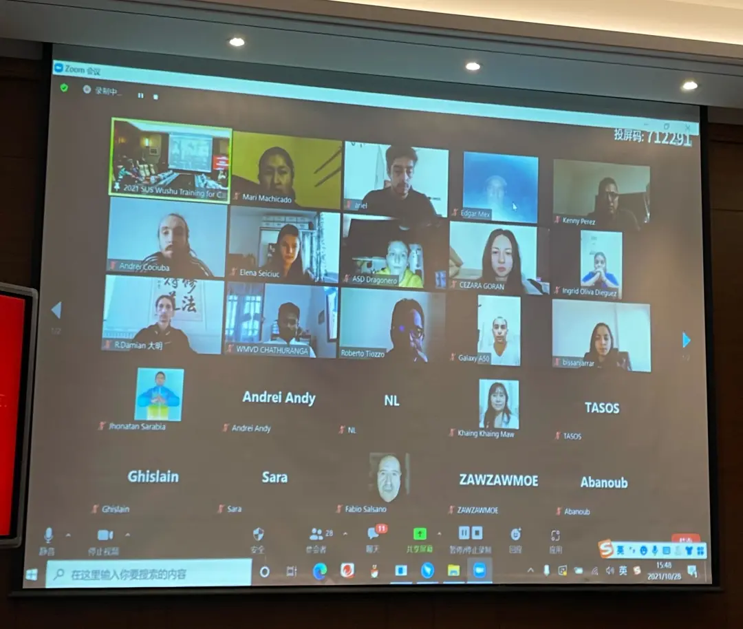 2021年“一带一路”国家和地区高水平武术教练员培训项目将于2021年10月28日至11月16期间举行,得到上海市武术院(上海市健身气功管理中心)的大力支持。该项目旨在深化我国与“一带一路”沿线(地区)在武术领域的交流合作并搭建共享平台。通过增进交流、提升水平,更好地推动中国与世界各国在武术领域的交流合作,传播中国传统武术文化,建设体育强国。开营典礼在与会嘉宾与线上学员们的“云合影”中迎来了尾声。让武术将世界各地的学员们融于一堂,携手共进,传承千年之文化,共赏武术之风华!