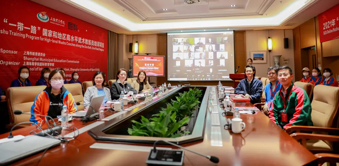 2021年10月28日下午,由上海市教育委员会主办、上海体育学院国际教育学院承办的“2021年一带一路国家和地区高水平武术教练员培训项目”(简称“带路武术项目”)开营典礼于我校体育交流中心举行。来自葡萄牙、意大利、西班牙、荷兰、法国、乌克兰、罗马尼亚、墨西哥、印度、斯里兰卡、马来西亚、尼泊尔、缅甸、泰国等10多个国家70余名学员通过网络平台在线参加了开营典礼。国教学院相关领导和教师、项目授课专家代表、项目支持单位代表和项目志愿者等30余人出席典礼。