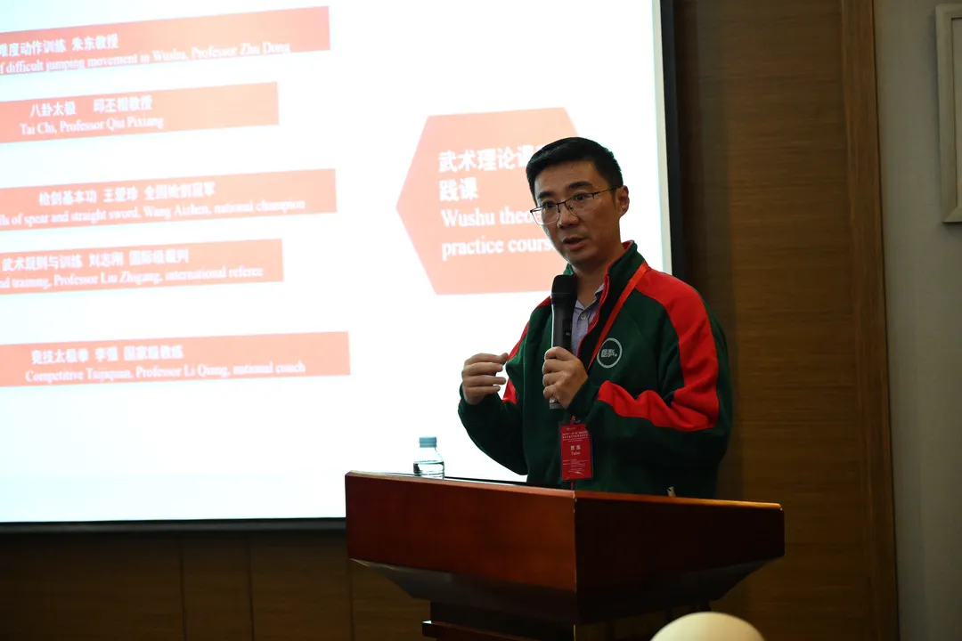 进入项目介绍环节, 国际教育学院副院长朱东教授以2019年的带路武术项目开篇,回顾了项目发展历程。19年的项目促进了武术的国际化发展,让上海体育学院成为一个更为宽阔的大门,也彰显了我校迎接一切友好的、爱好武术、渴望武术交流的国际友人。进入2021年,在后疫情时代和线上交互的背景之下,项目的线上课程也在追求改变和进步。他介绍道,本次培训邀请了武术名家邱丕相、王培锟以及王爱珍、刘志刚、李强等国家级教练员和裁判员,武术课程将覆盖武术器械、内家拳、传统武术套路、武术动作训练方法等多个方面,通过高质量,高水平的课程设计,将带给学员更高级、更专业的课程体验。