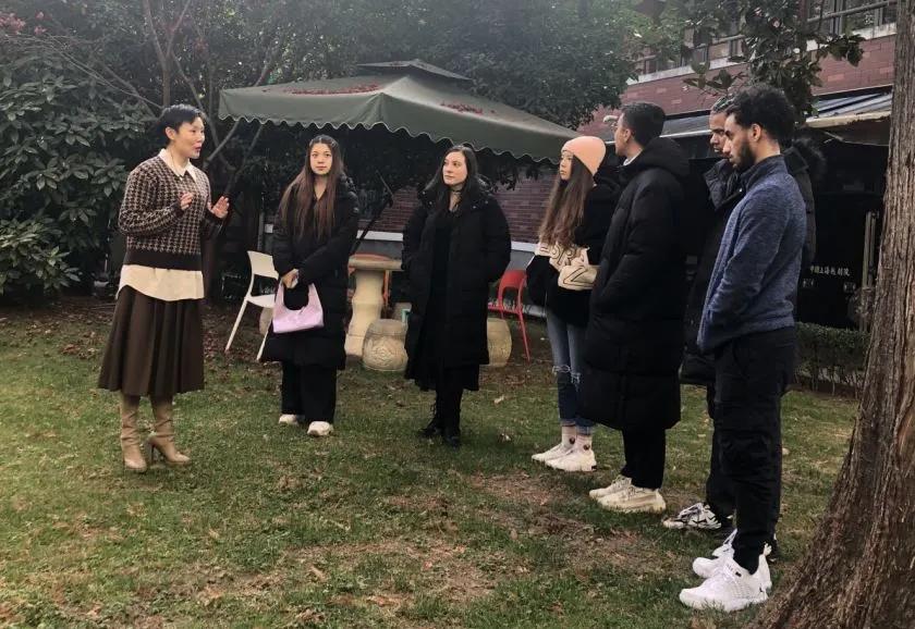 越剧作为中华文化符号之一,它所承载的历史文明正成为中华民族精神、性格和气质中不可取代的文化传统。作为国际学生文化体验系列活动之一,12月14日下午,阳光正好,我院师生一行九人来到位于复兴西路10弄的上海越剧院,与越剧来了一场亲密接触,体验了越剧之美。
