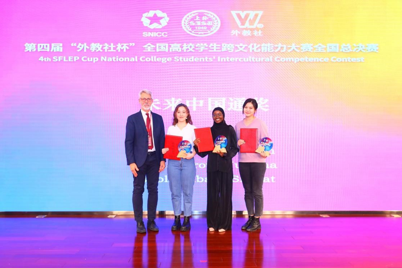 2月27日,以“坚定文化自信 增进国际理解”为主题的第四届“外教社杯”全国高校学生跨文化能力大赛全国总决赛在上海圆满落幕。大赛由中国教育国际交流协会指导,上海外国语大学主办,上海外语教育出版社承办,由我校跨文化研究中心提供学术支持。上海外国语大学党委书记姜锋出席了颁奖典礼,并发表了致辞。