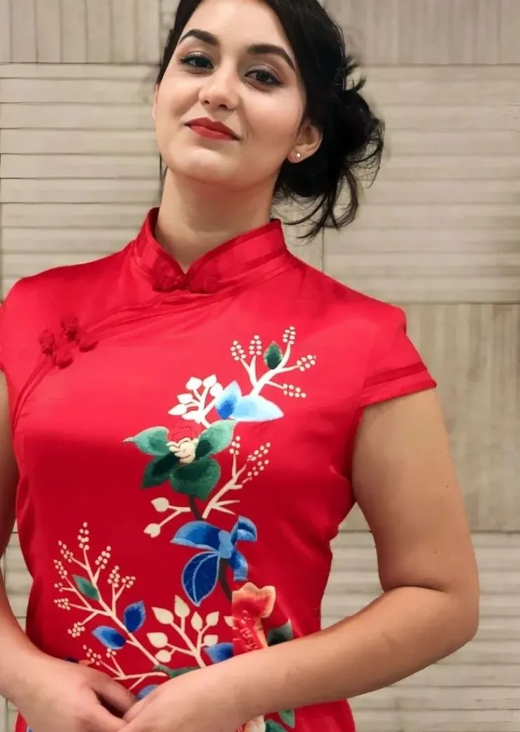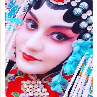 第一次来中国学习是2019年,那时也曾参加留学生活动,并学唱京剧名曲《梨花开》。因为之前我从没唱过,所以这次了不起的经历,让我很难忘也让我爱上了京剧。你看我的京剧服照还可以吧!2022年10月来再次来到上海学习,又学习京剧的脸谱艺术和绘画,特别有意思。