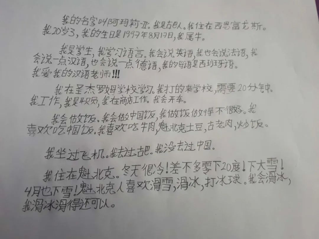 从小我就对中国文化感兴趣,我想学习汉语。来中国一直是我的梦想,当初这个梦想似乎不可能,但现在梦想变成了现实。很高兴,我可以好好学习汉语了。