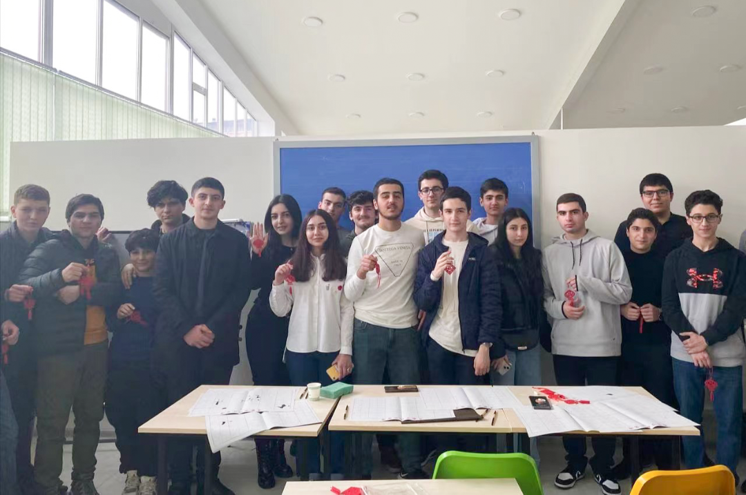 近日,上海交通大学密西根学院的三名亚美尼亚籍留学生回访位于亚美尼亚首都埃里温的母校物理和数学专科学校(The Physics and Mathematics Specialized School,英文简称PhysMath School),为学弟学妹们组织了一场中国文化日活动。