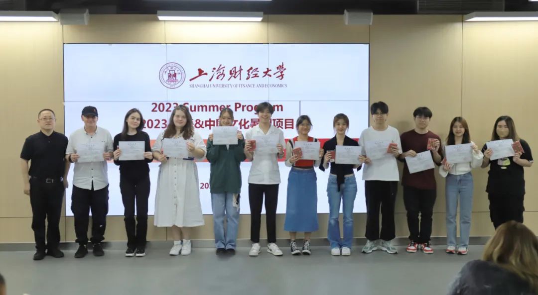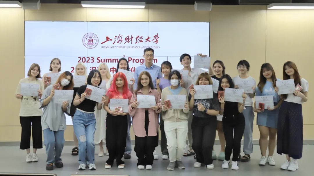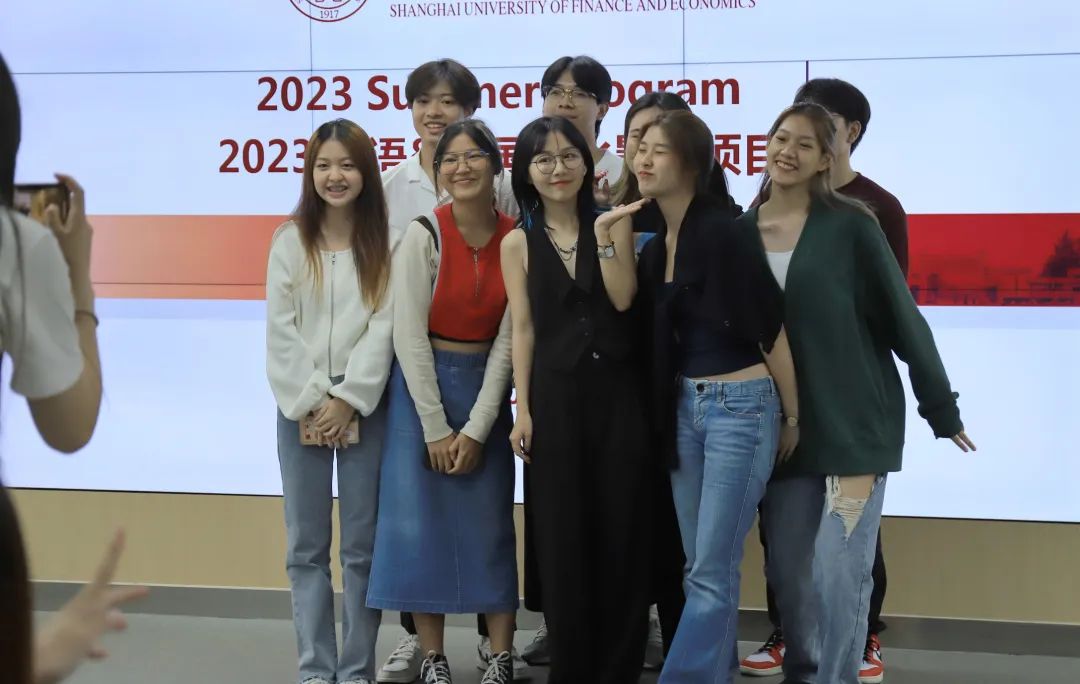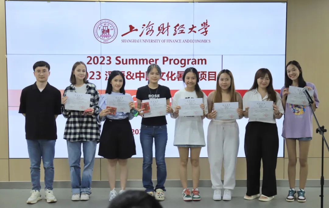 随后,暑期项目学员们对在SUFE的学习生活进行了总结回顾。“SUFE的中文课堂非常有趣,我的口语和听力进步很大!”来自泰国的周温宁说道。