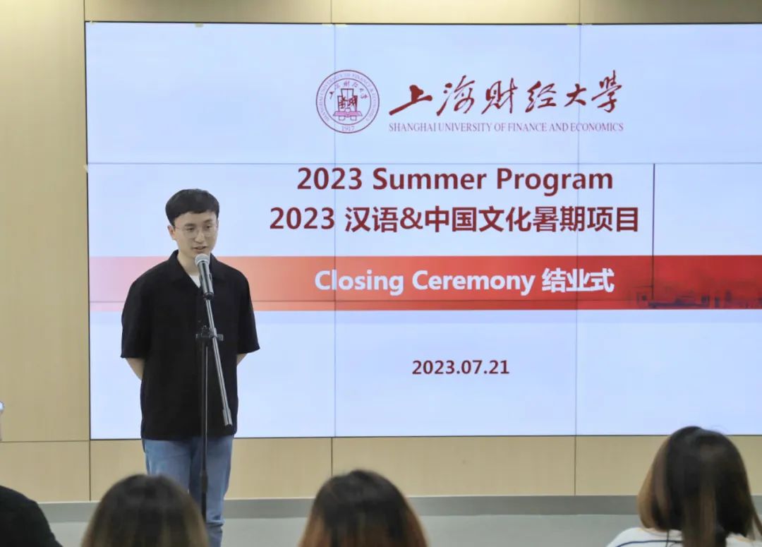 项目中文教师邵玉杰、林林、王连盛老师在发言中表示,与学员们度过的三周时光令人难忘,希望学员们能以本次暑期项目作为一个新起点,带着对汉语和中国文化的热爱,开启新的学习旅程,同时欢迎学员们有机会再次来到上海财经大学参加长短期项目,并祝福所有学员返程顺利。
