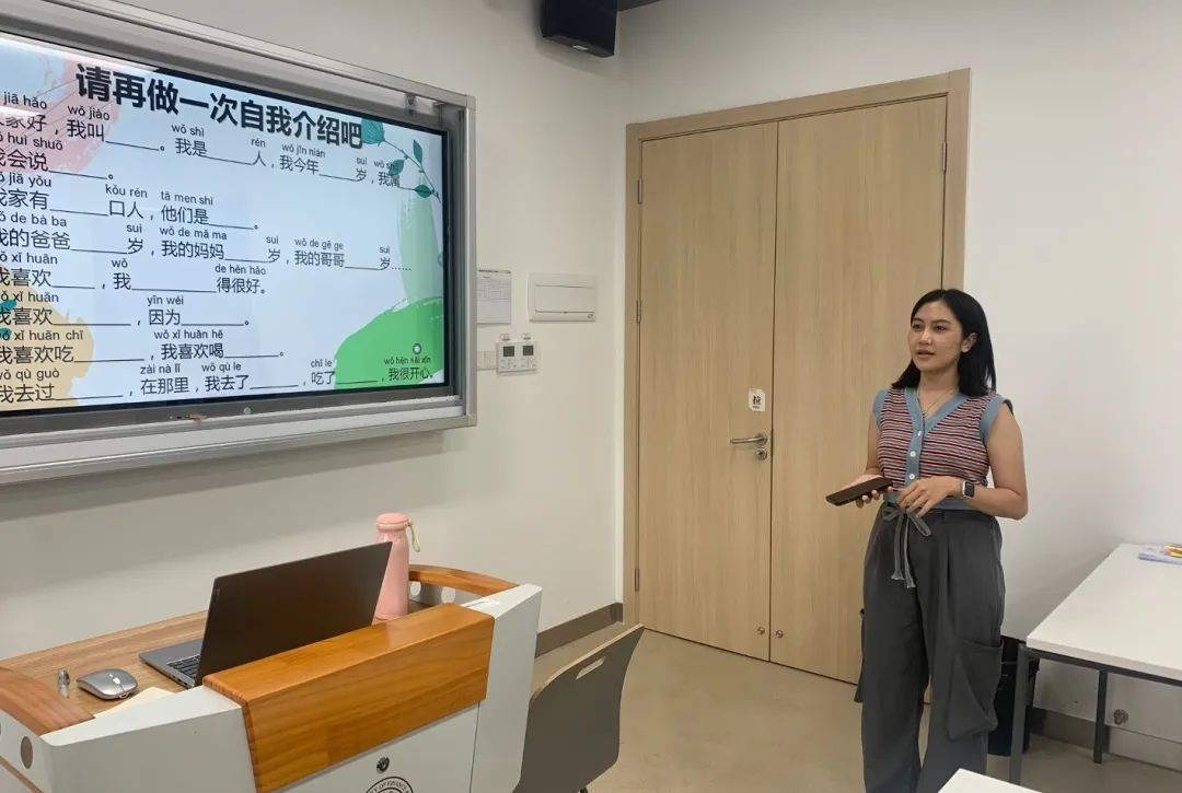 为提升暑期项目来华留学生汉语水平,为中外学生搭建交流平台,暑期项目开设“汉语角”小课堂。围绕自我介绍、爱好、美食、旅行等主题,助教向留学生们讲述用中文介绍兴趣爱好、烹饪手法与菜品口味、旅游景点的词汇与句式。在分组开展口语练习后,留学生们走上讲台展示交流成果。活动气氛热烈,教室中时常传出欢快的笑声。