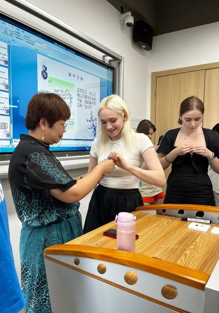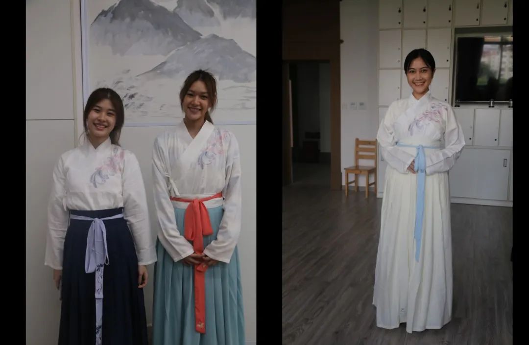 7月6日,暑期项目学员通过图片、视频、真人演示等多种方式,了解了汉服作为中国汉民族传统服装的历史发展和演变、汉服着装礼仪的规范和要点,对汉服及中国传统文化有了更深的体会和感知。精致的汉服让项目学员叹为观止,迫不及待地进行试穿,体验了别样的汉服风情。