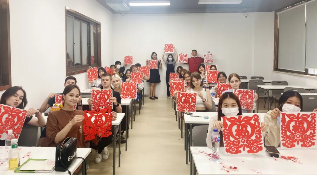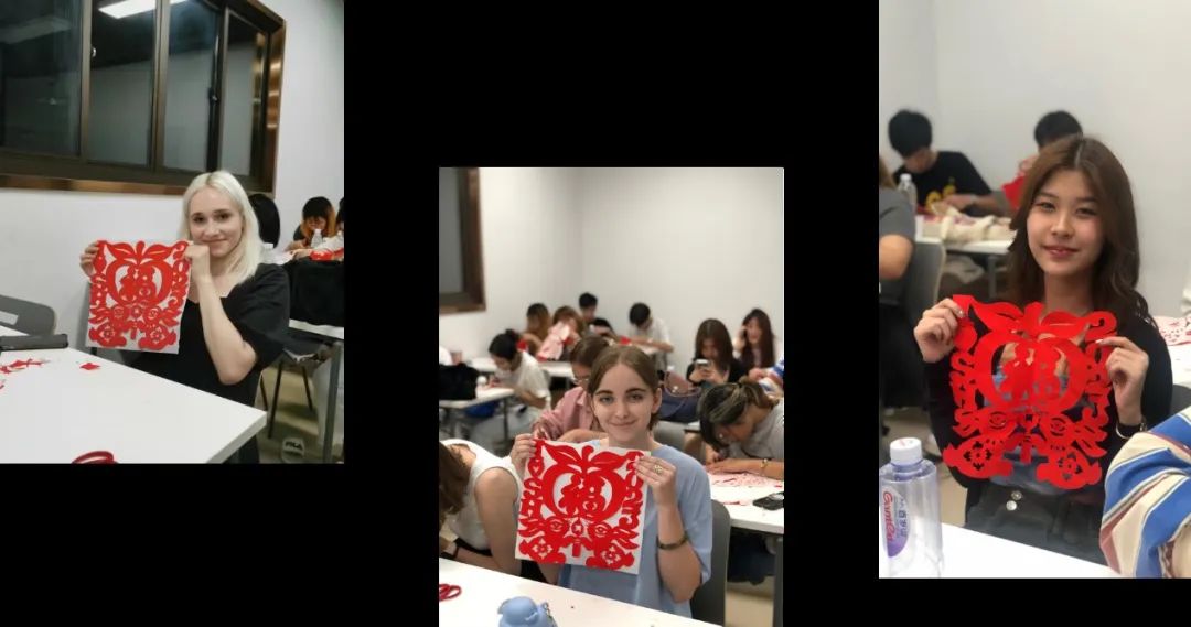 7月19日,留学生们通过视频和老师讲解认识了中国传统剪纸的样式和剪纸图案的吉祥寓意,并亲自实践,感受了剪纸作为中国人在长期的艺术实践产物所蕴含的独特审美价值。多数留学生都是初次接触剪纸,手法有些生疏,但他们都在用心学习,并在老师的指导下完成了剪纸作品。