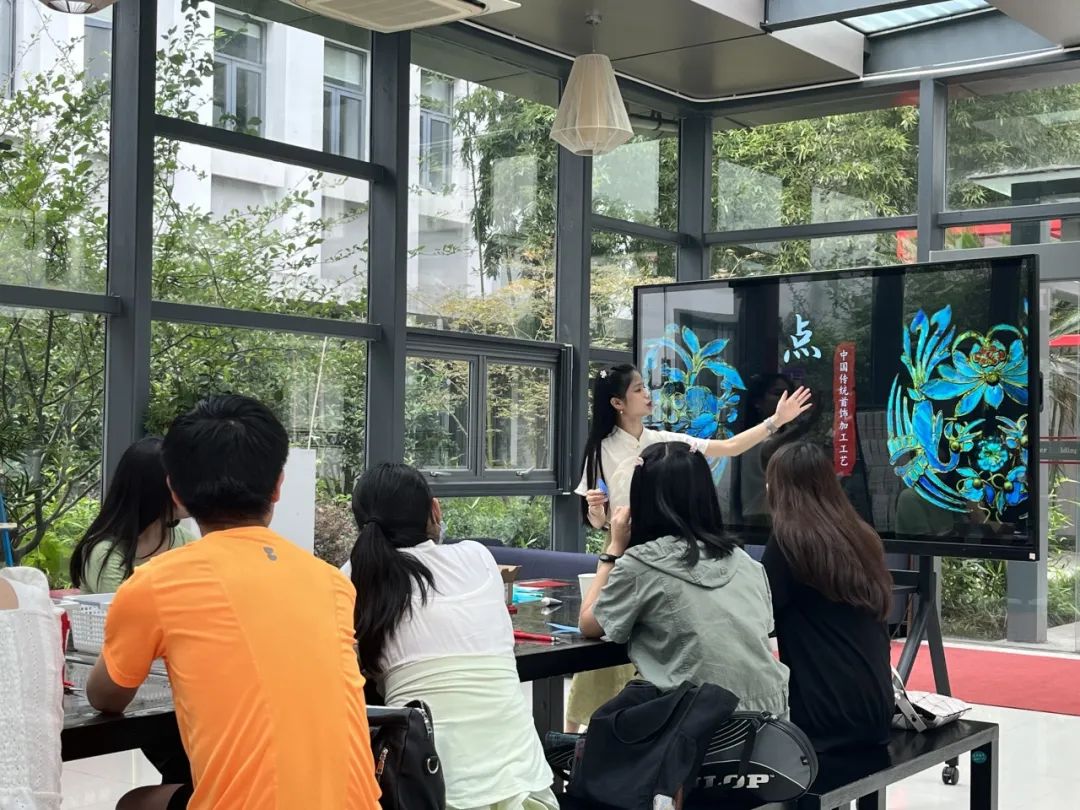 点翠是一种中国传统首饰工艺。传统的点翠工艺是用金属做成不同图案的底座,再把翠鸟的蓝色羽毛镶嵌上去,做成各种首饰器物。为了保护翠鸟,现在人们会用鹅毛、丝绸来代替翠鸟羽毛。