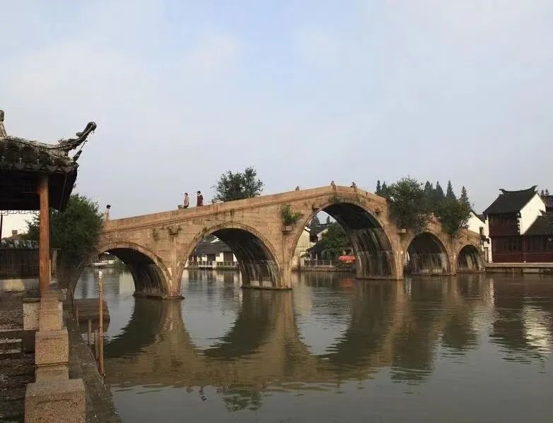 放生桥是上海地区最长、最大、最高的五孔石拱桥,称为“沪上第一桥”。漫步在百年前的古桥上,笑脸让清晨的古镇焕发了活力。