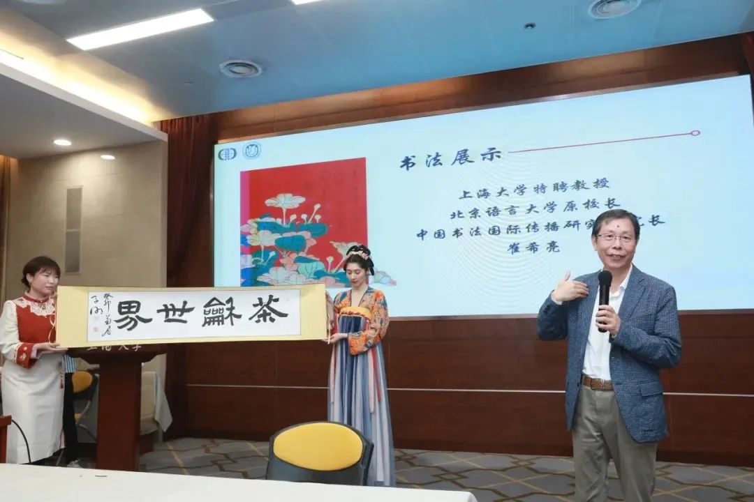 本次活动由上海市欧美同学会主办,上海市欧美同学会上海大学分会、上海大学国际教育学院、上海大学外国语学院、上海大学茶艺与茶道学会联合承办。支持单位有上海大学上海市公共艺术协同创新中心。上海大学党委副书记欧阳华,上海市欧美同学会专职副会长兼秘书长邹芳,上海大学特聘教授、北京语言大学原校长、中国书法国际传播研究院院长崔希亮,上海市欧美同学会联络部部长王杰弘,上海大学统战部部长曹为民,欧美同学会上大分会常务副会长、国际教育学院院长李颖洁,外国语学院院长尚新,妇委会副主任张英姿,国际教育学院副院长张新玲,茶艺与茶道学会会长潘璋敏等出席。活动由民间外交项目负责人、上海大学外国语学院副教授王骞主持。