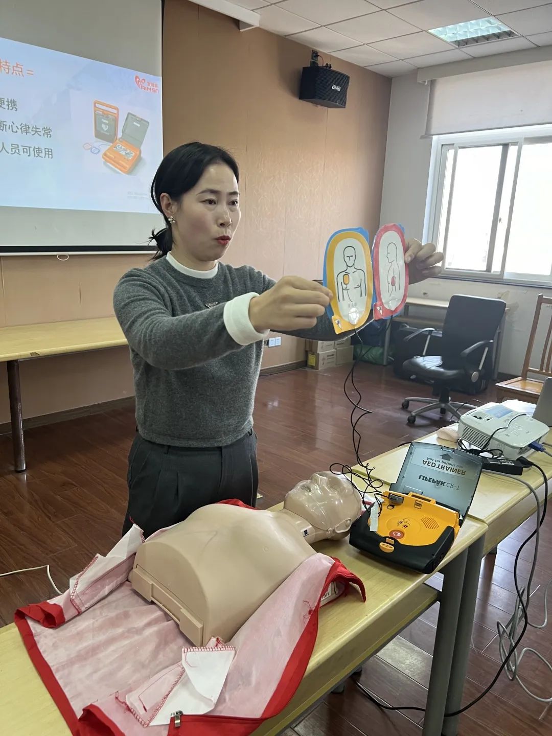 今天下午去参加了急救培训,使我高兴的不得了。通过老师的讲解,我学会了如何使用AED和按压心脏的救人方法。这活动有助于在紧急情况下,我有能力可以帮助身边的人。非常感谢组织者和老师们给我机会参加这有意义的培训。