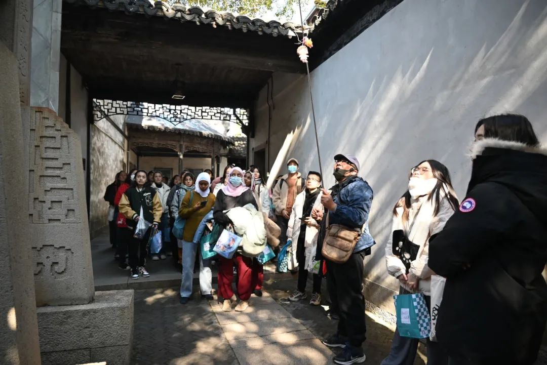 11月18日,留学生办公室2023年秋季学期第二期文化考察活动顺利开展。本次活动分为两条线路,本线路为浙江南浔古镇一日游,共有来自18个国家的近80名同学参加。