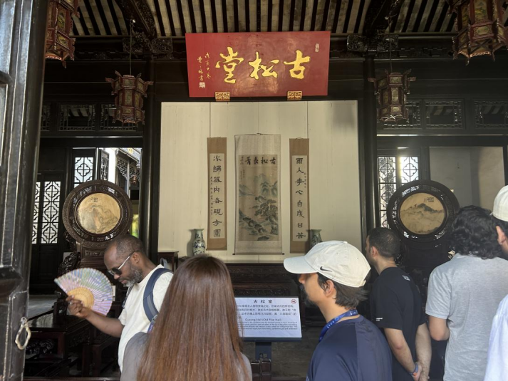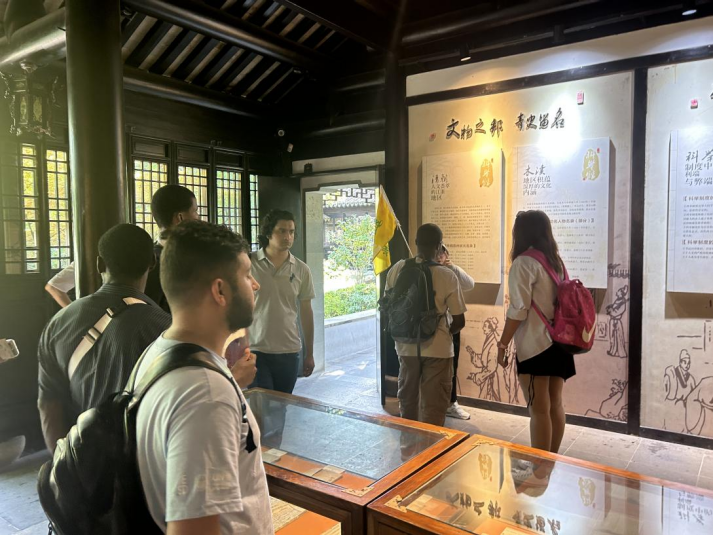 此外,国际学生们还深入游览了古松园、虹饮山房等著名景点。这些景点不仅风景秀丽,而且历史悠久,是木渎古镇文化的重要组成部分。在古松园内,学生们漫步于苍翠的古树之间,感受着时间的沉淀与自然的和谐共生。园内的每一处景致都透露着中国古典园林的精致与韵味,让学生们仿佛置身于一幅幅精美的山水画中。而虹饮山房,则以其宏大的规模和丰富的历史文化内涵,让学生们领略到了中国古代文人雅士的生活情趣和审美追求。