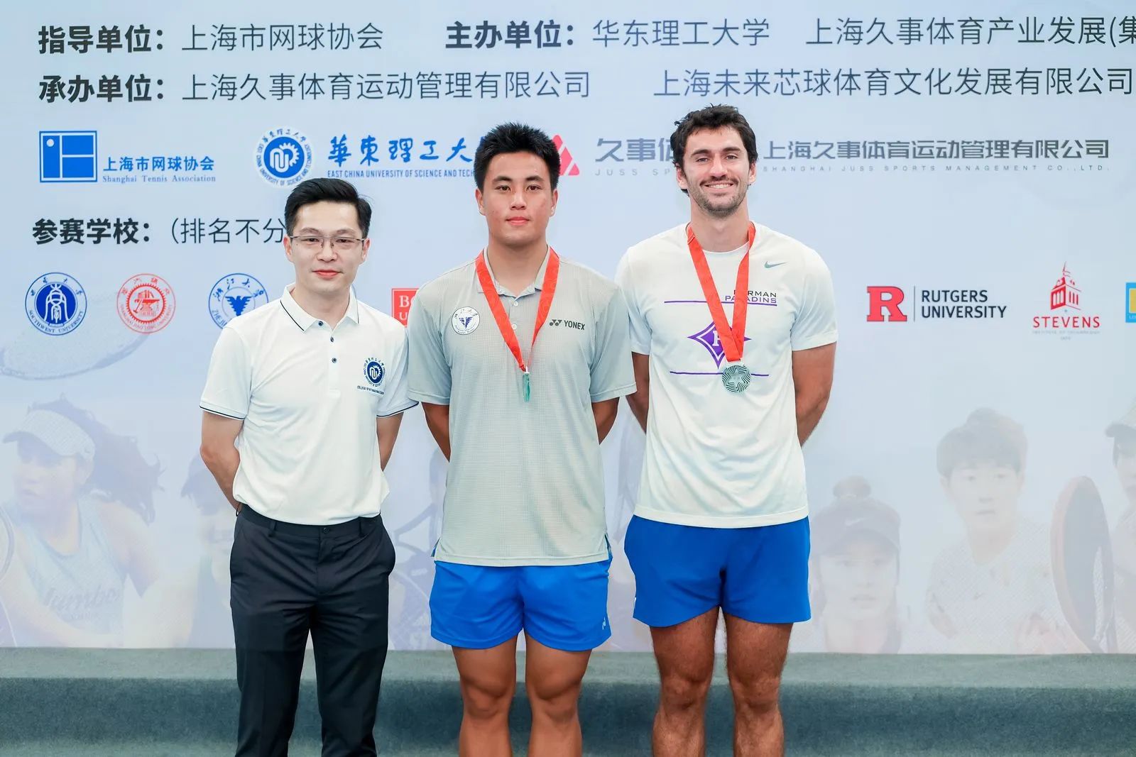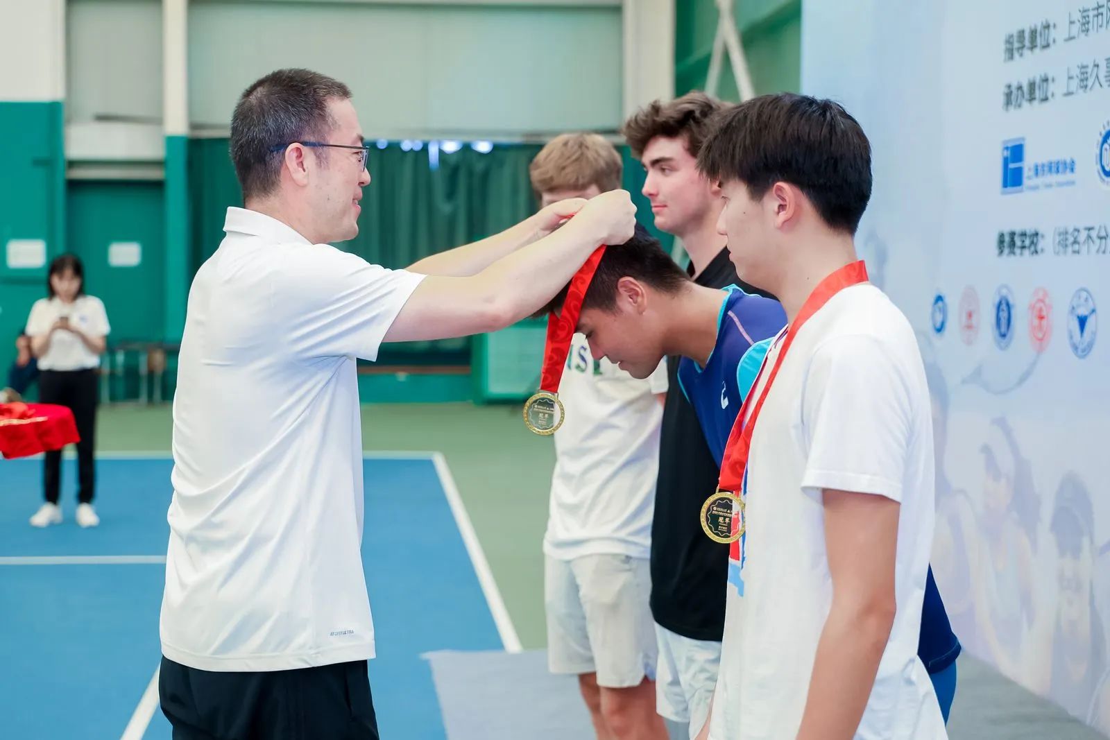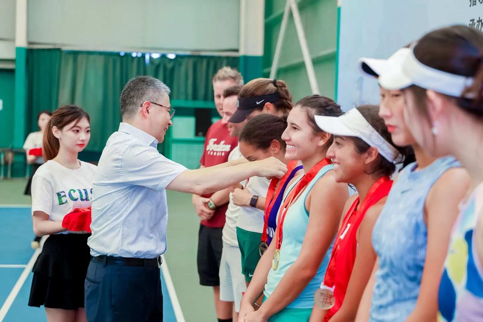 随后举行了颁奖典礼,上海久事体育产业发展(集团)有限公司总经理章华群为女子单打冠亚军颁奖;李霄鹏为男子单打冠亚军颁奖;华东理工大学体育科学与工程学院院长叶心明为女子双打冠亚军颁奖;上海久事(集团)有限公司副总裁樊建林为男子双打冠亚军颁奖;最后,由阎海峰和陆檩分别为女子团体和男子团体颁奖。至此,2024中美大学生网球友谊赛圆满落下帷幕,赛事的成功举办书写了“体育无界 共赢未来”的美好画卷。