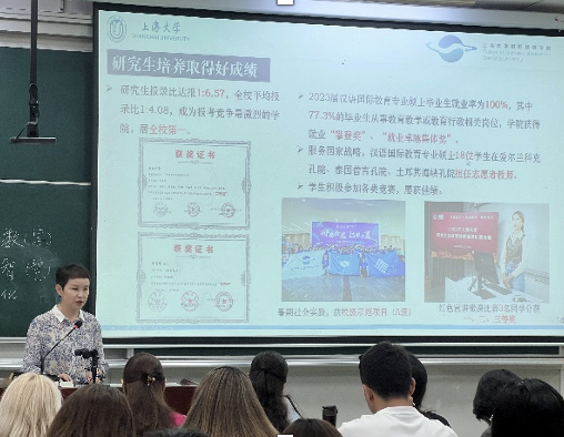 此外,李院长还详细介绍了国际教育学院的部门构成及各项特色工作。学院设有国际学生招生办公室、教学与研究中心、国际学生服务中心以及学院办公室等多个部门,各部门各司其职,共同为国际学生提供全方位的服务与支持。特别是教学与研究中心,凭借其强大的师资队伍和独特的培养特色,如专业导师和实习导师的双导师制、小班教学试讲点评、中外文化交流体验课等,取得了就业“攀登奖”和“就业卓越集体奖”等多项荣誉。国际学生服务中心以其全方位的事务办理、生活辅助,在“五位一体”的知华教育模式下,组织各类竞赛和学业帮扶工作,培养了很多中外优秀人才,在全国各类竞赛上获得优异成绩。
