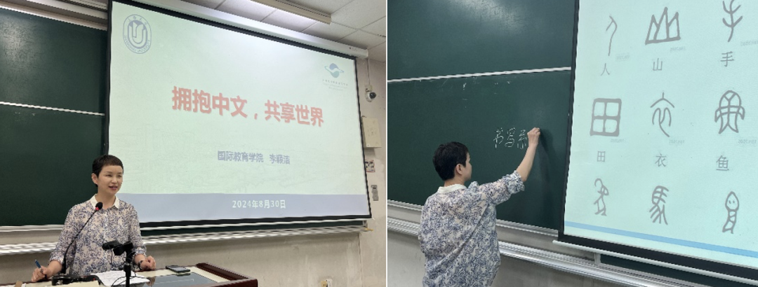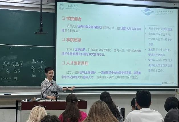 李颖洁院长首先以中文独特的音韵之美和汉字之魅为引子,生动地向汉语言、汉语国际教育的国际本科生及国际中文教育硕士中外新生展示了中文作为文化载体的深厚底蕴和艺术特质。李院长强调,中文不仅是交流的工具,更是连接不同文化和心灵的桥梁。