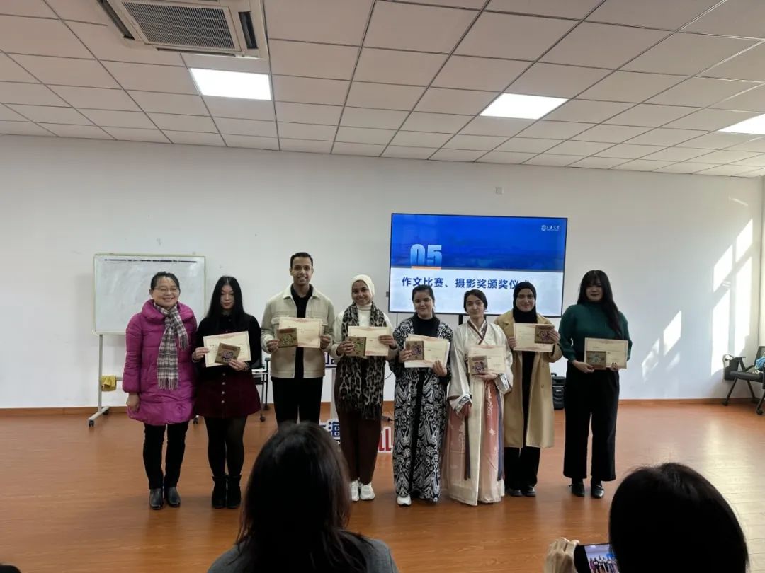 在学习上认真勤奋之外,同学们还积极参加国际教育学院举办的各项活动。在长期语言班作文比赛中,D班日本同学兼子萌萌获得一等奖;D班塔吉克斯坦同学牟雪、安然获得二等奖;D班荷兰同学张晓晴获得三等奖。此外, A+班的高伟德同学、D班善敏同学和B2班韩素银同学参加活动积极,荣获摄影奖, 国际学生项目中心孙玉老师为以上同学颁发证书和奖状。