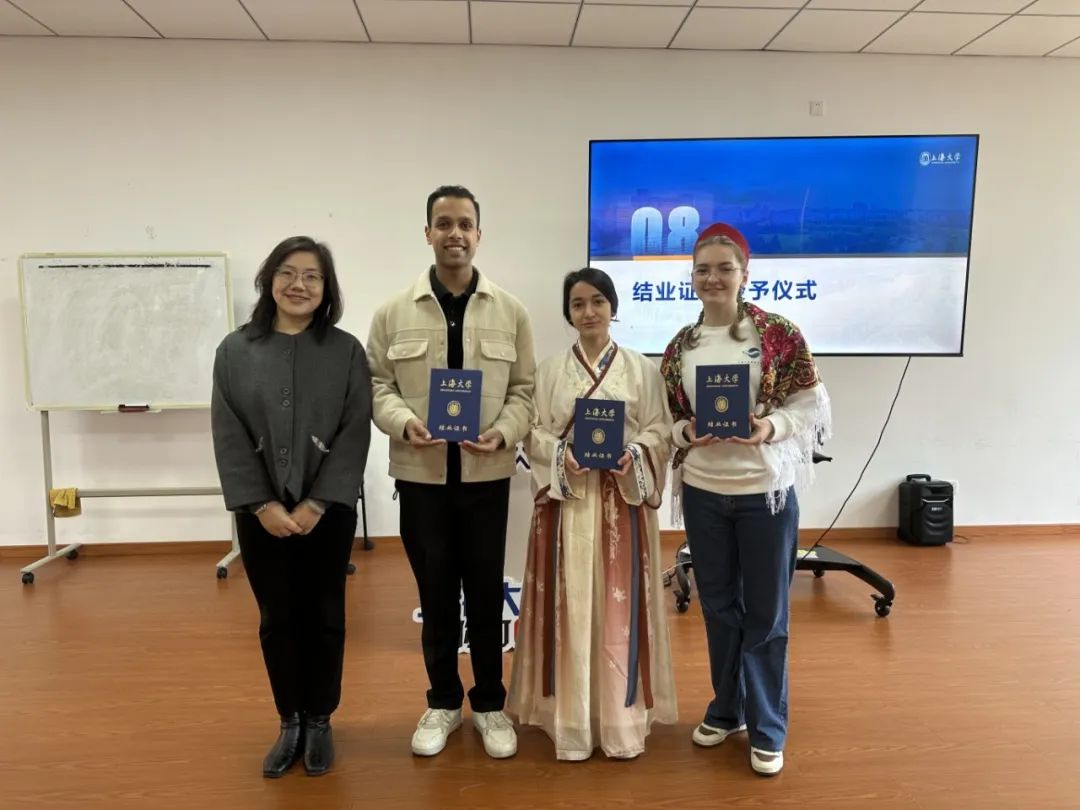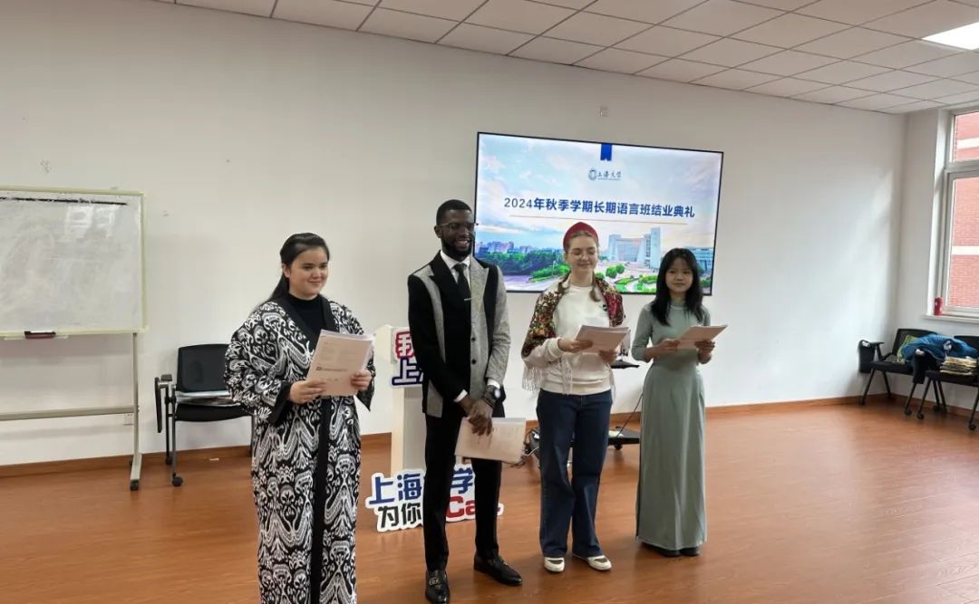 1月10日上午,国际教育学院2024年秋季学期长期语言班结业典礼在延长校区顺利举办。上海大学国际部党委书记王丽娜、国际学生项目中心教学副主管曾艳老师、任课教师及项目中心工作人员和国际学生们共60多人到场参加。结业典礼由俄罗斯学生伊丽莎白、津巴布韦学生周文轩、塔吉克斯坦学生牟雪、越南学生小初共同主持。