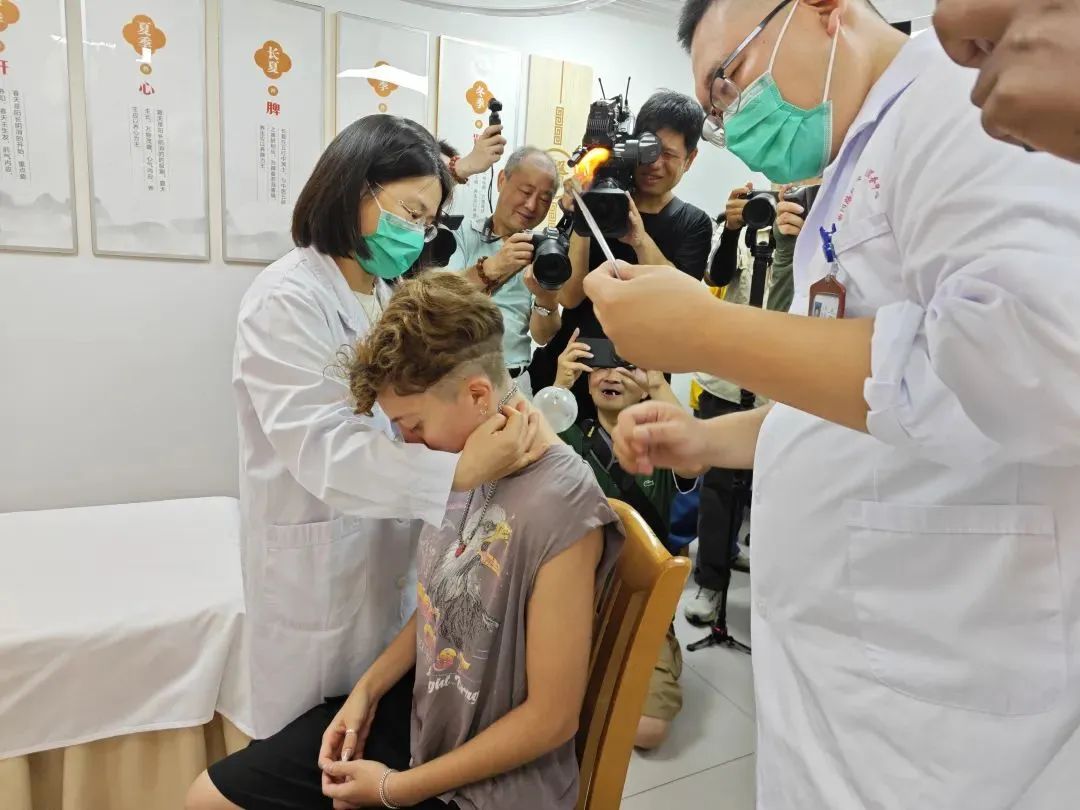 最后一站,为了让留学生感受曲阳社区既有人情味,又有高效率的治理理念,大家来到了第一市民驿站,参观了解社区食堂、一网通办自助服务、家庭医生等贴心服务,还体验了中医的“望闻问切”与拔罐。中医医生为俄罗斯学生诊脉,询问对方是否有睡眠问题,俄罗斯学生惊讶地感叹道:“很准!很对!”