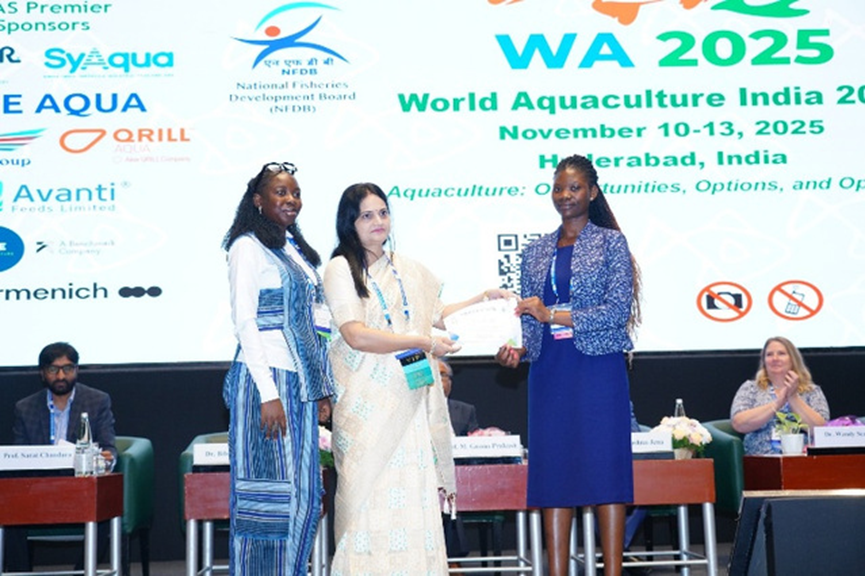 [Шанхайский океанический университет] Профессор и докторант приняли участие во Всемирной конференции по аквакультуре 2025 (Китай) и получили международную награду